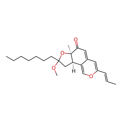 | InChI | InChI=1S/C23H32O4/c1-5-7-8-9-10-12-23(25-4)15-20-19-16-26-18(11-6-2)13-17(19)14-21(24)22(20,3)27-23/h6,11,13-14,16,20H,5,7-10,12,15H2,1-4H3/b11-6+/t20-,22-,23?/m1/s1 |