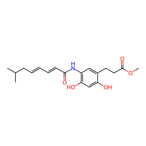 | InChI | InChI=1S/C19H25NO5/c1-13(2)7-5-4-6-8-18(23)20-15-11-14(9-10-19(24)25-3)16(21)12-17(15)22/h4-6,8,11-13,21-22H,7,9-10H2,1-3H3,(H,20,23)/b5-4+,8-6+ |