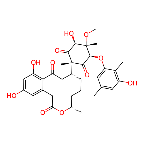 | SMILES | C[C@H]1CCC[C@H](CC(=O)C2=C(C=C(C=C2CC(=O)O1)O)O)[C@@]3(C(=O)[C@H]([C@]([C@H](C3=O)OC4=CC(=CC(=C4C)O)C)(C)OC)O)C |