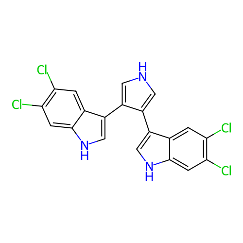 | SMILES | C1=C2C(=CC(=C1Cl)Cl)NC=C2C3=CNC=C3C4=CNC5=CC(=C(C=C54)Cl)Cl |