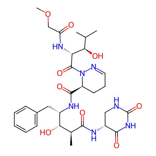 | SMILES | C[C@@H]([C@@H]([C@H](CC1=CC=CC=C1)NC(=O)[C@@H]2CCC=NN2C(=O)[C@@H]([C@@H](C(C)C)O)NC(=O)COC)O)C(=O)N[C@@H]3CNC(=O)NC3=O |