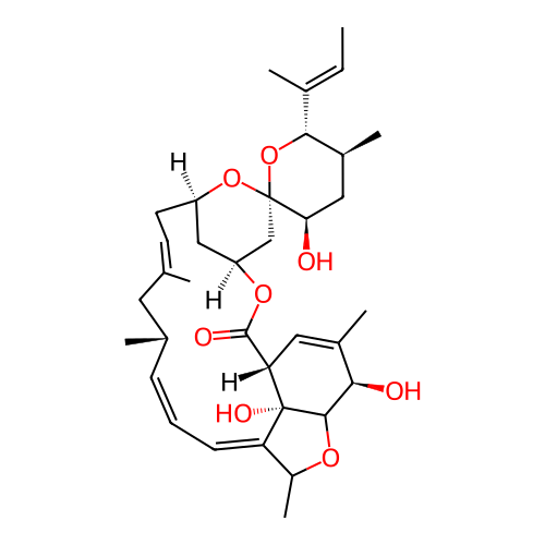 | InChI | InChI=1S/C35H50O8/c1-8-21(4)31-23(6)16-29(36)34(43-31)18-26-17-25(42-34)13-12-20(3)14-19(2)10-9-11-27-24(7)40-32-30(37)22(5)15-28(33(38)41-26)35(27,32)39/h8-12,15,19,23-26,28-32,36-37,39H,13-14,16-18H2,1-7H3/b10-9-,20-12-,21-8+,27-11-/t19-,23-,24?,25+,26-,28-,29+,30+,31+,32?,34-,35+/m0/s1 |