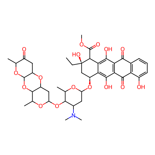 | SMILES | CC[C@]1(C[C@@H](C2=C(C3=C(C(=C2C1C(=O)OC)O)C(=O)C4=C(C3=O)C(=CC=C4)O)O)OC5CC(C(C(O5)C)OC6CC7C(C(O6)C)OC8C(O7)CC(=O)C(O8)C)N(C)C)O |