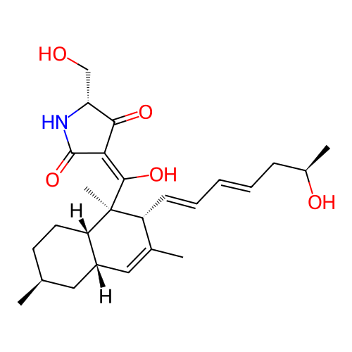 | InChI | InChI=1S/C26H37NO5/c1-15-10-11-20-18(12-15)13-16(2)19(9-7-5-6-8-17(3)29)26(20,4)24(31)22-23(30)21(14-28)27-25(22)32/h5-7,9,13,15,17-21,28-29,31H,8,10-12,14H2,1-4H3,(H,27,32)/b6-5+,9-7+,24-22?/t15-,17+,18-,19+,20-,21+,26-/m0/s1 |