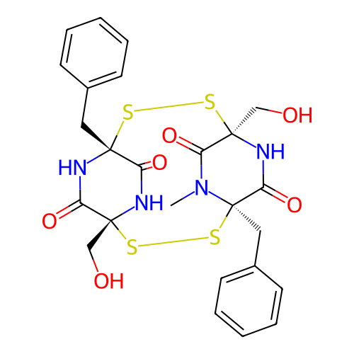 | SMILES | CN1C(=O)[C@@]2(NC(=O)[C@]1(SS[C@@]3(C(=O)N[C@@](C(=O)N3)(SS2)CC4=CC=CC=C4)CO)CC5=CC=CC=C5)CO |