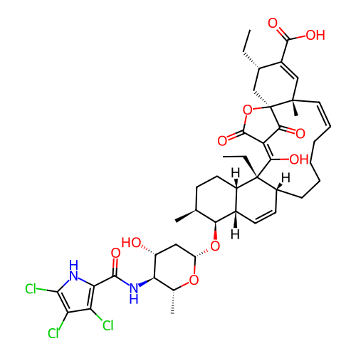 | SMILES | CC[C@H]1C[C@@]23C(=O)C(=C([C@@]4([C@H](CCCC/C=C\[C@]2(C=C1C(=O)O)C)C=C[C@H]5[C@@H]4CC[C@@H]([C@@H]5O[C@H]6C[C@H]([C@@H]([C@H](O6)C)NC(=O)C7=C(C(=C(N7)Cl)Cl)Cl)O)C)CC)O)C(=O)O3 |
