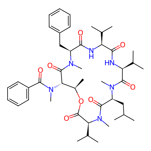 | SMILES | C[C@@H]1[C@@H](C(=O)N([C@H](C(=O)N[C@H](C(=O)N[C@H](C(=O)N([C@H](C(=O)N([C@H](C(=O)O1)C(C)C)C)CC(C)C)C)C(C)C)C(C)C)CC2=CC=CC=C2)C)N(C)C(=O)C3=CC=CC=C3 |