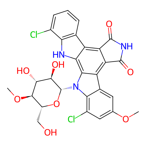 | InChI | InChI=1S/C28H23Cl2N3O8/c1-39-9-6-11-16-18-17(26(37)32-27(18)38)15-10-4-3-5-12(29)19(10)31-20(15)22(16)33(21(11)13(30)7-9)28-24(36)23(35)25(40-2)14(8-34)41-28/h3-7,14,23-25,28,31,34-36H,8H2,1-2H3,(H,32,37,38)/t14-,23-,24-,25-,28-/m1/s1 |