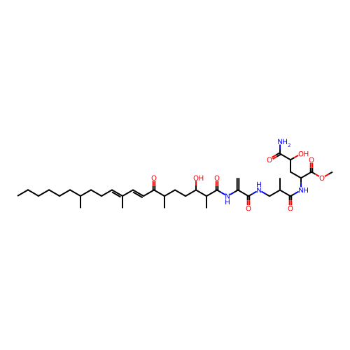 | SMILES | CCCCCCC(C)CC/C=C(\C)/C=C/C(=O)C(C)CCC(C(C)C(=O)NC(=C)C(=O)NCC(C)C(=O)NC(CC(C(=O)N)O)C(=O)OC)O |