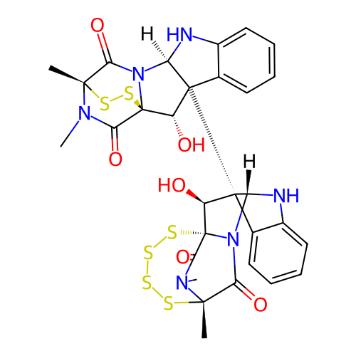 | SMILES | C[C@]12C(=O)N3[C@@H]4[C@]([C@@H]([C@@]3(C(=O)N1C)SSSS2)O)(C5=CC=CC=C5N4)C67[C@@H]([C@]89C(=O)N([C@](C(=O)N8[C@H]6NC1=CC=CC=C71)(SS9)C)C)O |