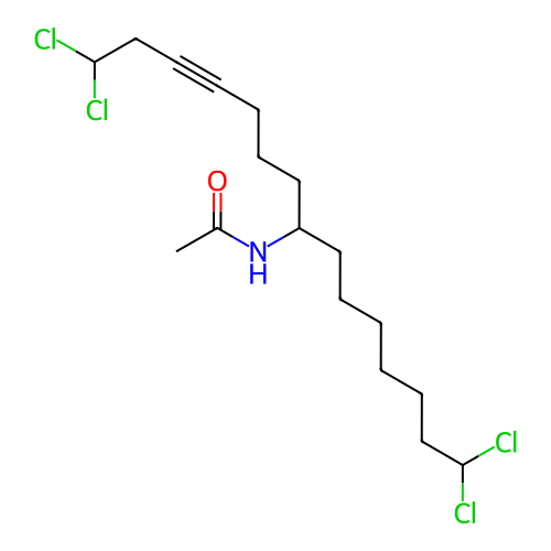 | SMILES | CC(=O)NC(CCCCCCC(Cl)Cl)CCCC#CCC(Cl)Cl |