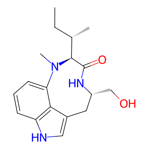 | SMILES | CC[C@H](C)[C@H]1C(=O)N[C@@H](CC2=CNC3=C2C(=CC=C3)N1C)CO |
