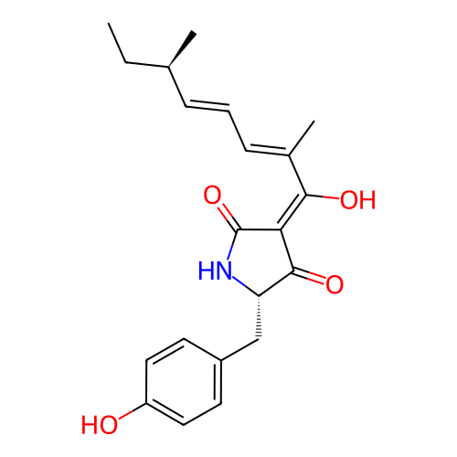 | InChI | InChI=1S/C21H25NO4/c1-4-13(2)6-5-7-14(3)19(24)18-20(25)17(22-21(18)26)12-15-8-10-16(23)11-9-15/h5-11,13,17,23-24H,4,12H2,1-3H3,(H,22,26)/t13-,17+/m1/s1 |
