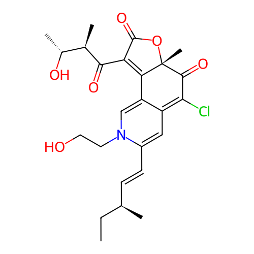 | SMILES | CC[C@H](C)C=CC1=CC2=C(C(=O)[C@@]3(C(=C(C(=O)O3)C(=O)[C@H](C)[C@@H](C)O)C2=CN1CCO)C)Cl |