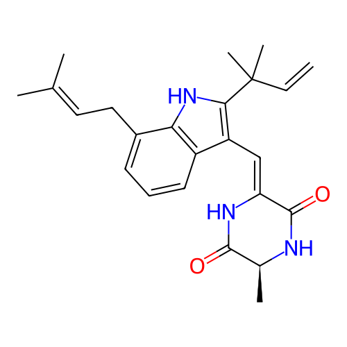| SMILES | C[C@H]1C(=O)N/C(=C\C2=C(NC3=C2C=CC=C3CC=C(C)C)C(C)(C)C=C)/C(=O)N1 |