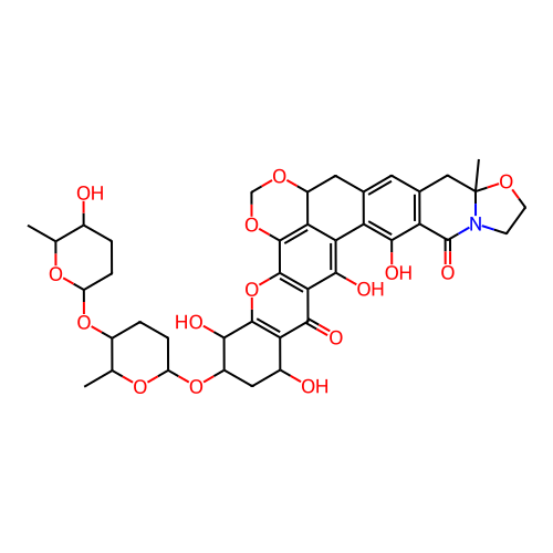 | SMILES | CC1C(CCC(O1)OC2CCC(OC2C)OC3CC(C4=C(C3O)OC5=C(C4=O)C(=C6C7=C5OCOC7CC8=CC9=C(C(=C86)O)C(=O)N1CCOC1(C9)C)O)O)O |
