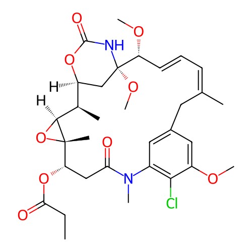 | SMILES | CCC(=O)O[C@H]1CC(=O)N(C2=C(C(=CC(=C2)C/C(=C/C=C/[C@H]([C@]3(C[C@@H]([C@H]([C@H]4[C@]1(O4)C)C)OC(=O)N3)OC)OC)/C)OC)Cl)C |