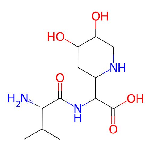 | InChI | InChI=1S/C12H23N3O5/c1-5(2)9(13)11(18)15-10(12(19)20)6-3-7(16)8(17)4-14-6/h5-10,14,16-17H,3-4,13H2,1-2H3,(H,15,18)(H,19,20)/t6?,7?,8?,9-,10?/m0/s1 |