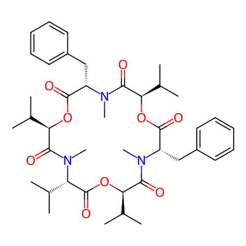 | SMILES | CC(C)[C@H]1C(=O)O[C@@H](C(=O)N([C@H](C(=O)O[C@@H](C(=O)N([C@H](C(=O)O[C@@H](C(=O)N1C)C(C)C)CC2=CC=CC=C2)C)C(C)C)CC3=CC=CC=C3)C)C(C)C |