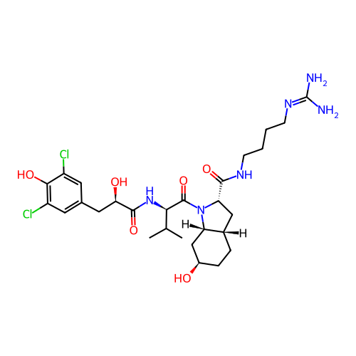 | SMILES | CC(C)[C@H](C(=O)N1[C@H]2C[C@@H](CC[C@H]2C[C@H]1C(=O)NCCCCN=C(N)N)O)NC(=O)[C@@H](CC3=CC(=C(C(=C3)Cl)O)Cl)O |