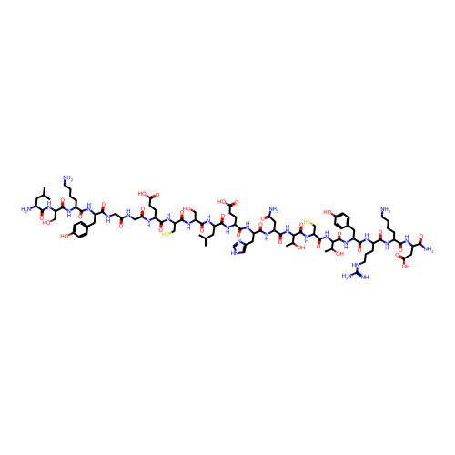 | SMILES | CC(C)CC(C(=O)NC(CO)C(=O)NC(CCCCN)C(=O)NC(CC1=CC=C(C=C1)O)C(=O)NCC(=O)NCC(=O)NC(CCC(=O)O)C(=O)NC(CS)C(=O)NC(CO)C(=O)NC(CC(C)C)C(=O)NC(CCC(=O)O)C(=O)NC(CC2=CNC=N2)C(=O)NC(CC(=O)N)C(=O)NC(C(C)O)C(=O)NC(CS)C(=O)NC(C(C)O)C(=O)NC(CC3=CC=C(C=C3)O)C(=O)NC(CCCNC(=N)N)C(=O)NC(CCCCN)C(=O)NC(CC(=O)O)C(=O)N)N |