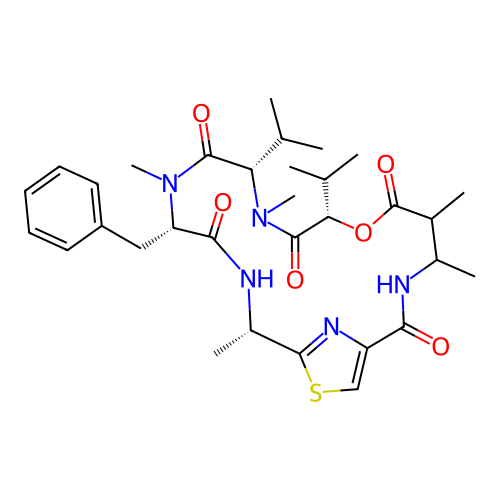 | SMILES | C[C@H]1C2=NC(=CS2)C(=O)NC(C(C(=O)O[C@H](C(=O)N([C@H](C(=O)N([C@H](C(=O)N1)CC3=CC=CC=C3)C)C(C)C)C)C(C)C)C)C |