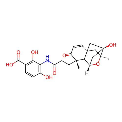 | InChI | InChI=1S/C24H27NO8/c1-21(7-6-16(28)25-17-13(26)4-3-12(18(17)29)20(30)31)15(27)5-8-23-10-22(2)24(32,11-23)9-14(33-22)19(21)23/h3-5,8,14,19,26,29,32H,6-7,9-11H2,1-2H3,(H,25,28)(H,30,31)/t14-,19?,21+,22-,23+,24-/m0/s1 |