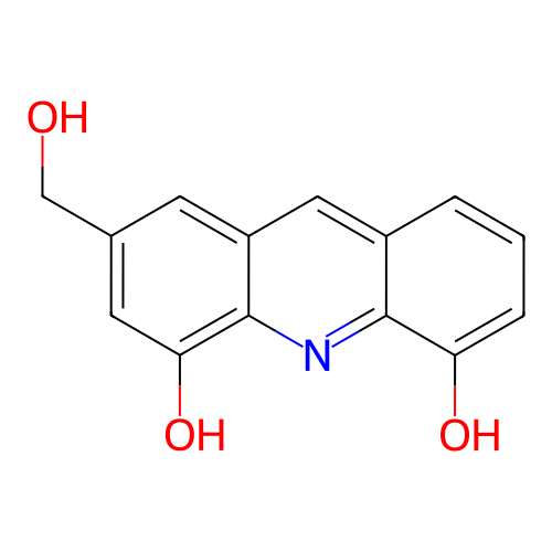| SMILES | C1=CC2=CC3=CC(=CC(=C3N=C2C(=C1)O)O)CO |