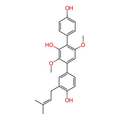 | InChI | InChI=1S/C25H26O5/c1-15(2)5-6-18-13-17(9-12-21(18)27)20-14-22(29-3)23(24(28)25(20)30-4)16-7-10-19(26)11-8-16/h5,7-14,26-28H,6H2,1-4H3 |