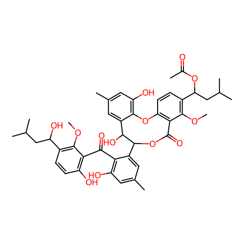 | SMILES | CC1=CC(=C2C(=C1)C(C(OC(=O)C3=C(O2)C=CC(=C3OC)C(CC(C)C)OC(=O)C)C4=CC(=CC(=C4C(=O)C5=C(C=CC(=C5OC)C(CC(C)C)O)O)O)C)O)O |