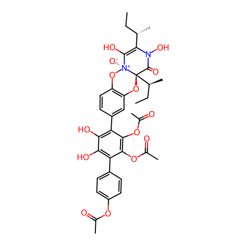 | SMILES | CC[C@H](C)C1=C(O)[N@+]2([O-])OC3=C(C=C(C4=C(O)C(O)=C(C5=CC=C(OC(C)=O)C=C5)C(OC(C)=O)=C4OC(C)=O)C=C3)O[C@]2([C@@H](C)CC)C(=O)N1O |