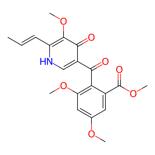 | InChI | InChI=1S/C20H21NO7/c1-6-7-14-19(27-4)18(23)13(10-21-14)17(22)16-12(20(24)28-5)8-11(25-2)9-15(16)26-3/h6-10H,1-5H3,(H,21,23)/b7-6+ |