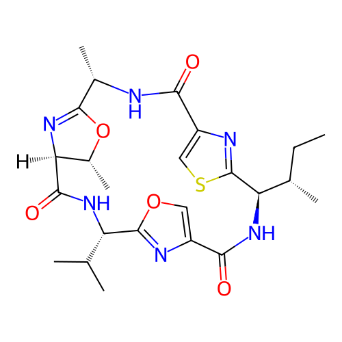| SMILES | CC[C@H](C)[C@@H]1C2=NC(=CS2)C(=O)N[C@H](C3=N[C@@H]([C@H](O3)C)C(=O)N[C@H](C4=NC(=CO4)C(=O)N1)C(C)C)C |