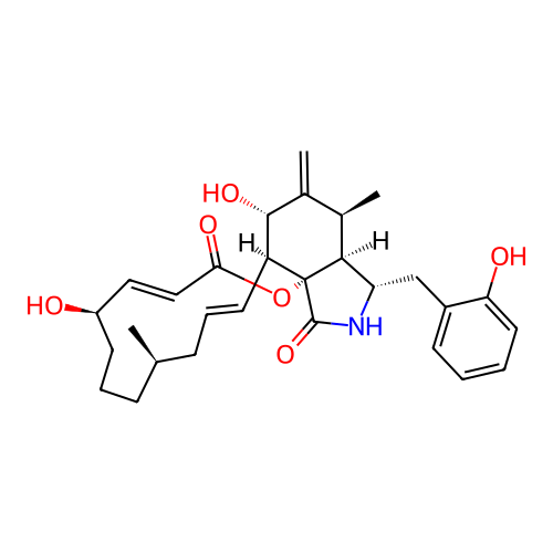 | SMILES | C[C@@H]1CCC[C@H](/C=C/C(=O)O[C@]23[C@@H](/C=C/C1)[C@@H](C(=C)[C@H]([C@H]2[C@@H](NC3=O)CC4=CC=CC=C4O)C)O)O |