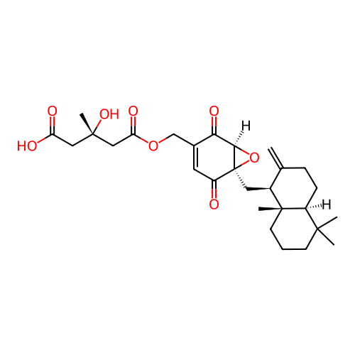 | SMILES | C=C1CC[C@H]2C(C)(C)CCC[C@]2(C)[C@H]1C[C@@]12O[C@@H]1C(=O)C(COC(=O)C[C@@](C)(O)CC(=O)O)=CC2=O |