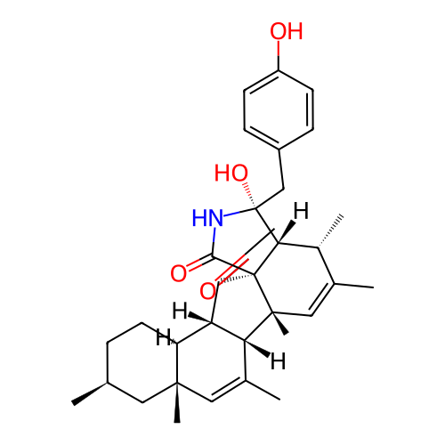 | InChI | InChI=1S/C32H41NO4/c1-17-7-12-23-24-25(19(3)14-29(23,5)13-17)30(6)15-18(2)20(4)26-31(37,16-21-8-10-22(34)11-9-21)33-28(36)32(26,30)27(24)35/h8-11,14-15,17,20,23-26,34,37H,7,12-13,16H2,1-6H3,(H,33,36)/t17-,20+,23-,24-,25+,26-,29-,30+,31+,32-/m0/s1 |