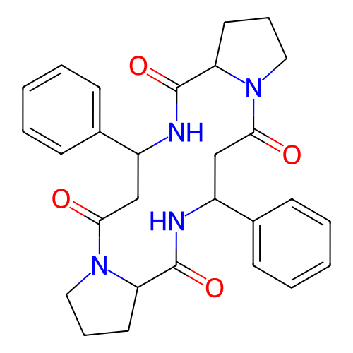 | SMILES | C1CC2C(=O)NC(CC(=O)N3CCCC3C(=O)NC(CC(=O)N2C1)C4=CC=CC=C4)C5=CC=CC=C5 |