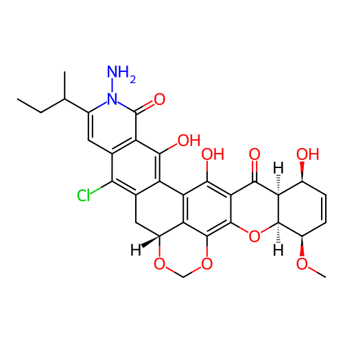 | SMILES | CCC(C)C1=CC2=C(C(=C3C(=C2Cl)C[C@@H]4C5=C3C(=C6C(=O)[C@H]7[C@H](C=C[C@H]([C@H]7OC6=C5OCO4)OC)O)O)O)C(=O)N1N |