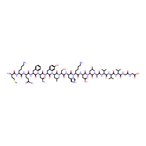 | SMILES | CC(C)CC(C(=O)NC(CO)C(=O)NC(CC1=CNC=N1)C(=O)NC(CCCCN)C(=O)NC(CC(=O)O)C(=O)NC(CC(C)C)C(=O)NC(C)C(=O)NC(C(C)C)C(=O)NC(C(C)C)C(=O)NC(C(C)C)C(=O)NCC(=O)NCC(=O)O)NC(=O)C(CC2=CC=C(C=C2)O)NC(=O)C(CC(=O)N)NC(=O)C(CC3=CC=CC=C3)NC(=O)C(CCC(=O)N)NC(=O)C(CCCCN)NC(=O)C(CCSC)N |