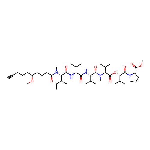 | InChI | InChI=1S/C45H77N5O10/c1-16-18-19-22-32(58-14)23-20-25-34(51)48(12)38(31(11)17-2)41(53)46-35(27(3)4)40(52)47-36(28(5)6)42(54)49(13)37(29(7)8)45(57)60-39(30(9)10)43(55)50-26-21-24-33(50)44(56)59-15/h1,27-33,35-39H,17-26H2,2-15H3,(H,46,53)(H,47,52)/t31-,32?,33-,35-,36-,37-,38-,39-/m0/s1 |