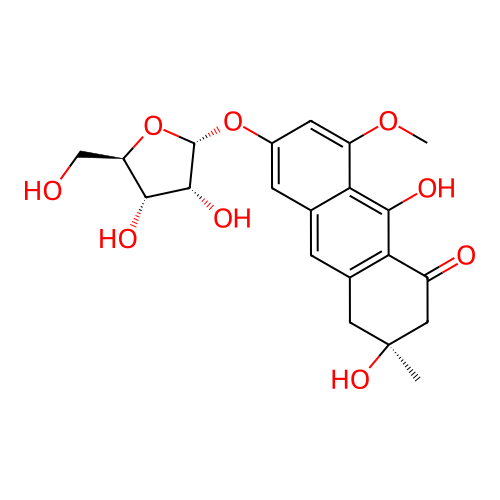 | InChI | InChI=1S/C21H24O9/c1-21(27)6-10-3-9-4-11(29-20-19(26)17(24)14(8-22)30-20)5-13(28-2)16(9)18(25)15(10)12(23)7-21/h3-5,14,17,19-20,22,24-27H,6-8H2,1-2H3/t14-,17-,19-,20+,21+/m1/s1 |