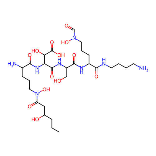 | SMILES | CCCC(CC(=O)N(CCCC(C(=O)NC(C(C(=O)O)O)C(=O)NC(CO)C(=O)NC(CCCN(C=O)O)C(=O)NCCCCN)N)O)O |