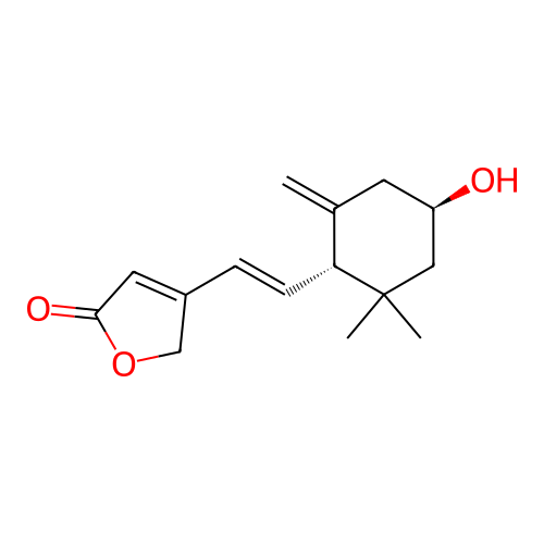 | InChI | InChI=1S/C15H20O3/c1-10-6-12(16)8-15(2,3)13(10)5-4-11-7-14(17)18-9-11/h4-5,7,12-13,16H,1,6,8-9H2,2-3H3/b5-4+/t12-,13-/m1/s1 |