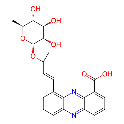 | SMILES | C[C@H]1[C@@H]([C@H]([C@H]([C@H](O1)OC(C)(C)C=CC2=C3C(=CC=C2)N=C4C=CC=C(C4=N3)C(=O)O)O)O)O |