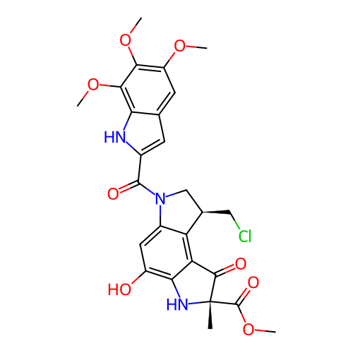 | SMILES | C[C@@]1(C(=O)C2=C3[C@@H](CN(C3=CC(=C2N1)O)C(=O)C4=CC5=CC(=C(C(=C5N4)OC)OC)OC)CCl)C(=O)OC |