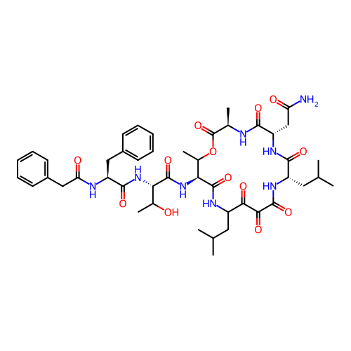 | SMILES | C[C@@H]1C(=O)OC([C@@H](C(=O)NC(C(=O)C(=O)C(=O)N[C@H](C(=O)N[C@H](C(=O)N1)CC(=O)N)CC(C)C)CC(C)C)NC(=O)[C@H](C(C)O)NC(=O)[C@H](CC2=CC=CC=C2)NC(=O)CC3=CC=CC=C3)C |