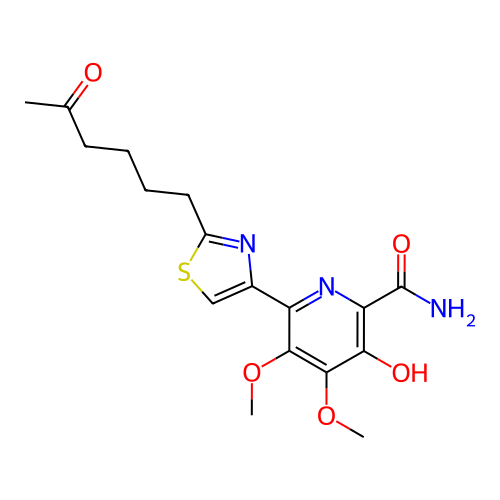 | SMILES | CC(=O)CCCCC1=NC(=CS1)C2=NC(=C(C(=C2OC)OC)O)C(=O)N |