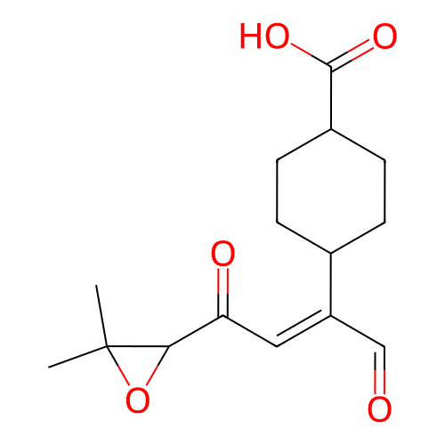 | SMILES | CC1(C(O1)C(=O)/C=C(/C=O)\C2CCC(CC2)C(=O)O)C |