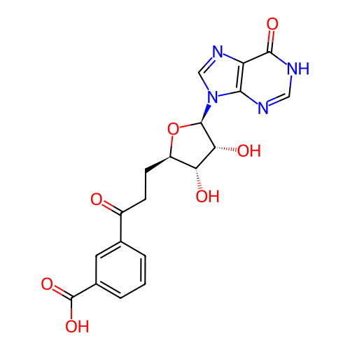 | InChI | InChI=1S/C19H18N4O7/c24-11(9-2-1-3-10(6-9)19(28)29)4-5-12-14(25)15(26)18(30-12)23-8-22-13-16(23)20-7-21-17(13)27/h1-3,6-8,12,14-15,18,25-26H,4-5H2,(H,28,29)(H,20,21,27)/t12-,14-,15-,18-/m1/s1 |