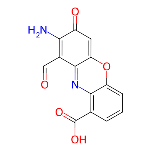 | SMILES | C1=CC(=C2C(=C1)OC3=CC(=O)C(=C(C3=N2)C=O)N)C(=O)O |